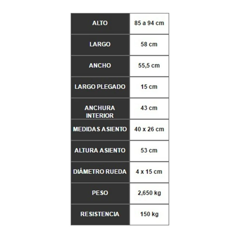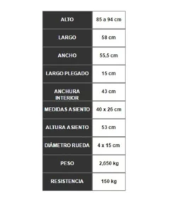 - Asiento: 25 x 39 cm