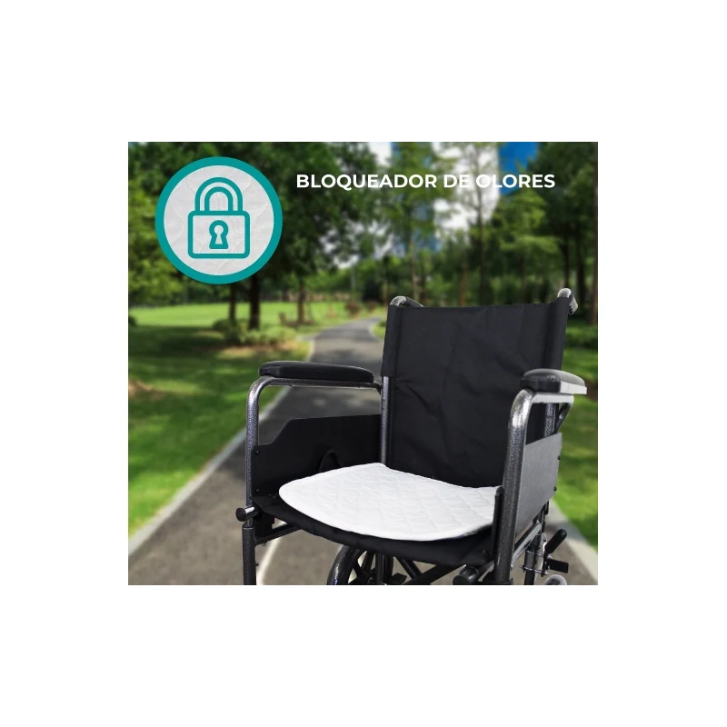 Este empapador para silla de ruedas puede utilizarse en caso de enuresis y en situaciones de sudoración excesiva, ya que evita el exceso de humedad en la piel del paciente. Se trata de un protector empapador de silla transpirable, lavable, impermeable y de fácil colocación y ajuste sobre la silla. Gracias a su composición de 4 capas se consigue una correcta absorción de líquidos y fluidos, manteniendo la piel del paciente limpia y seca.