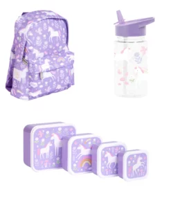 Mochila Pequeña Unicorn Botella Unicorn y Lunch & Snackbox Unicorn para Niños