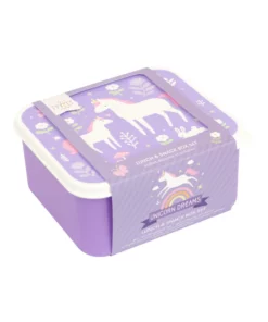 La caja Lunch & Snackbox Unicorn Dreams te ayuda a mantener tus comidas organizadas y frescas, siendo ideal para llevar a todas partes.
