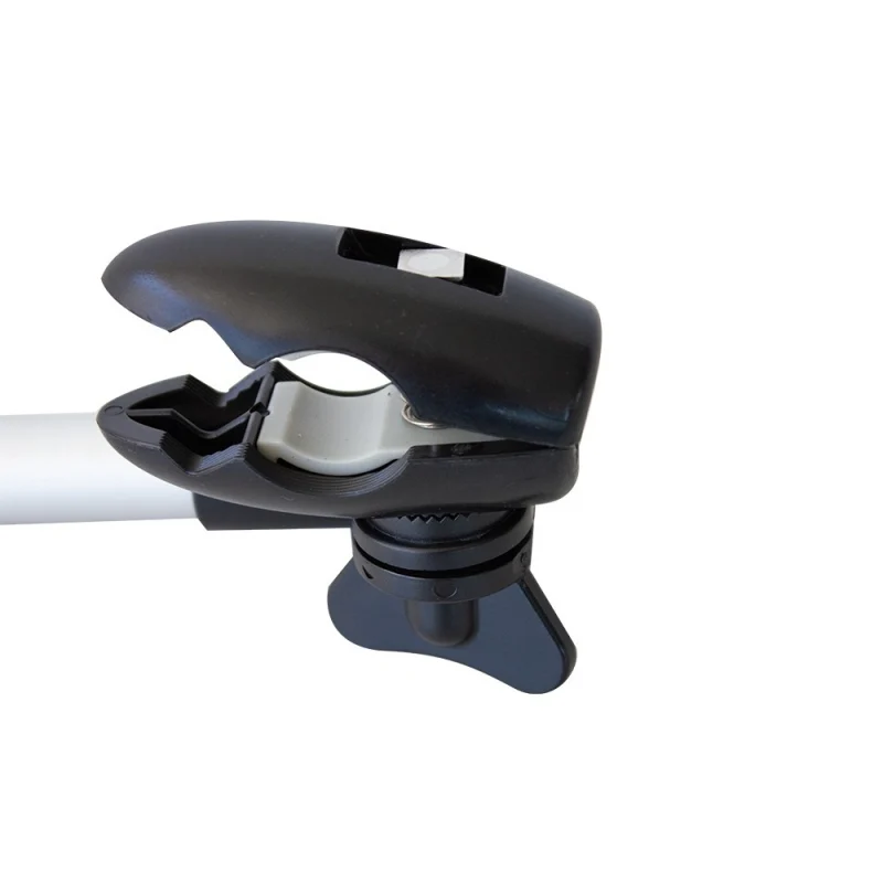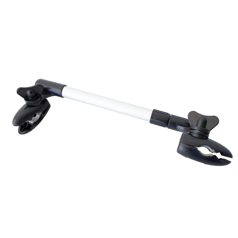 Puede instalarse en la mayoría de las sillas de ruedas o andadores. Está diseñado para sujetarse en tubos de 8 a 30 mm. Se coloca acoplándolo en el tubo de la estructura de la silla de ruedas o andador, y fijándolo para evitar que el paraguas se suelte o se mueva durante su uso.
